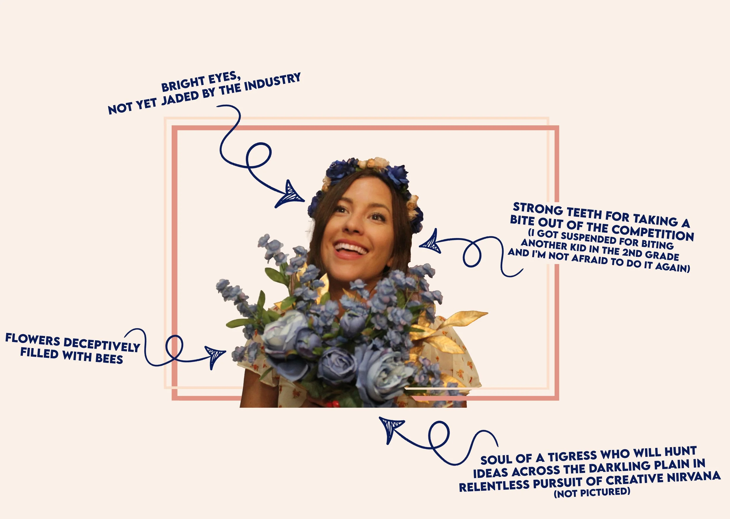 A background in comedy writing and performance that has afforded me a preternatural ability to accept and implement critical feedback without crying